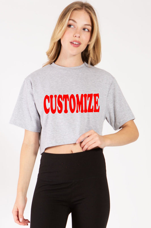 Basic Solid Short Sleeve Stretch Crop Top Custom Crop Top, Personalized Crop Top, Custom Crop Top, Custom Shirt Printing