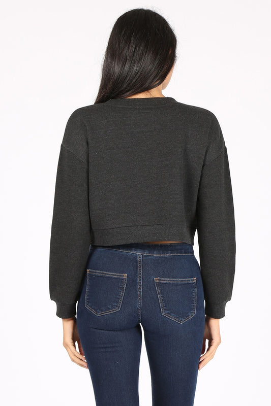 BASIC PLAIN SOLID FLEECE CROP CREWNECK SWEATSHIRT