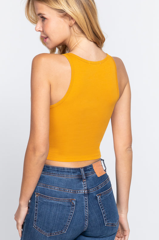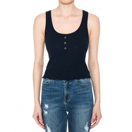 HENLEY SCOOP NECK LETTUCE CROP TANK TOP