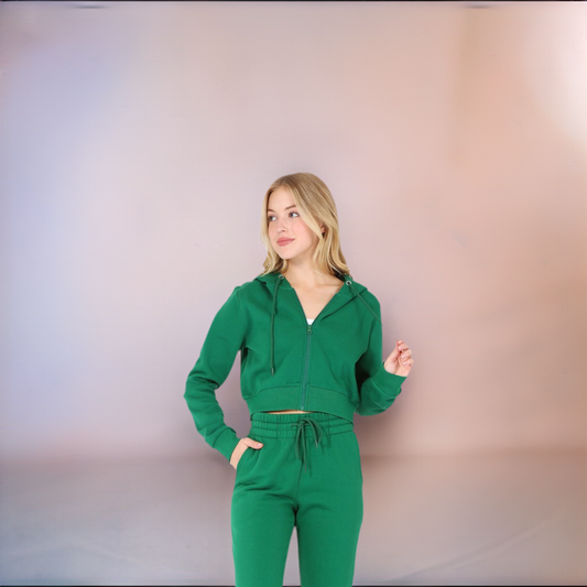Basic Plain Solid Fleece Full Zip Crop Hoodie Sweatshirt