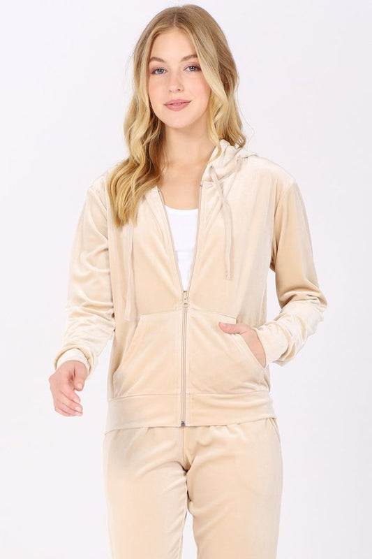 Velour Zip Hoodie (Plus Size) Front split kangaroo pocket Drawstring hoodie