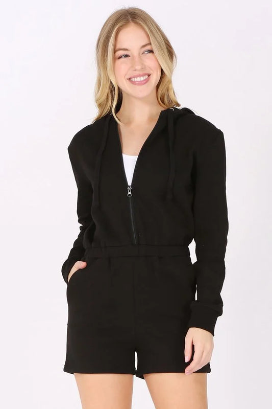 FLEECE ZIP UP HOODIE JUMPSUIT *ONE PIECE JUMPSUIT FEATURING A ZIP UP HOODIE TOP *CUFFED ANKLE BOTTOMS