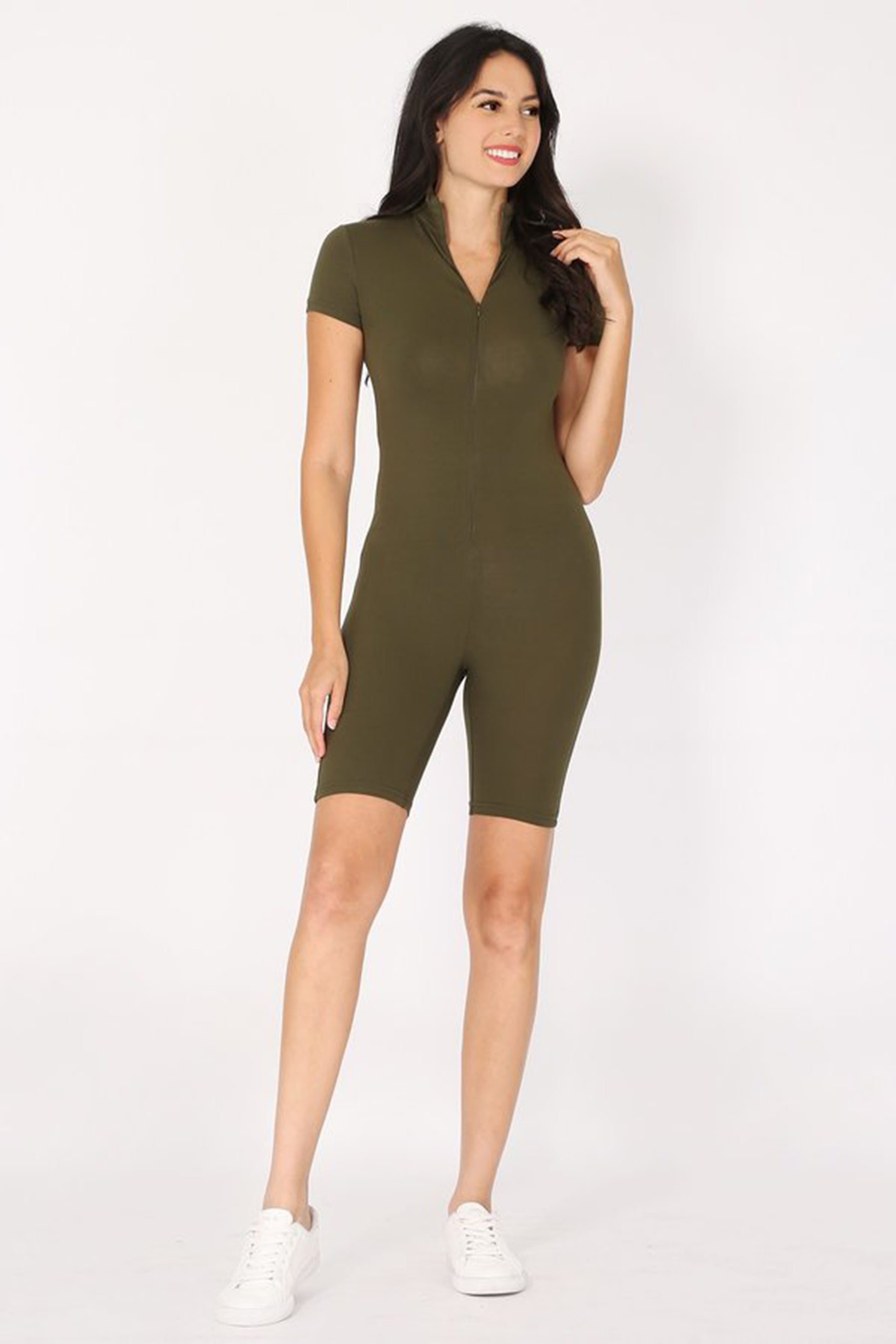 - SHORT SLEEVE MOCK NECK w/ZIPPER ROMPER