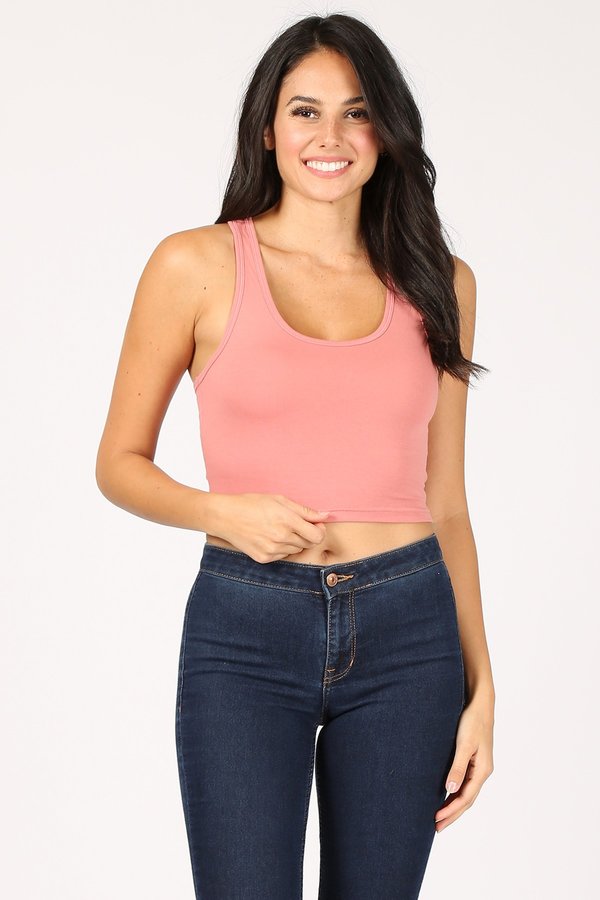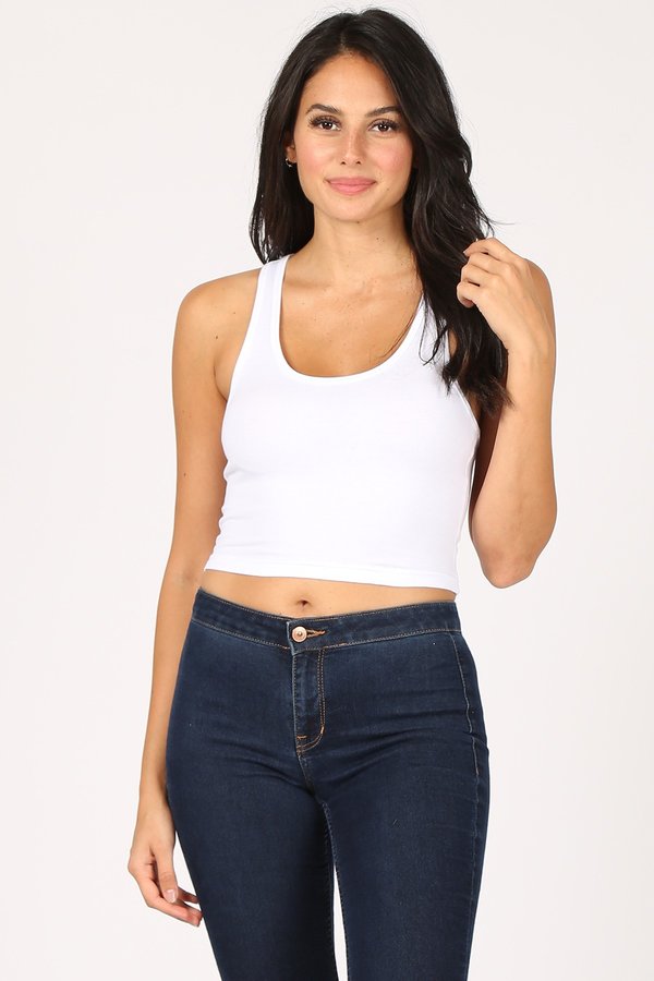 Racerback Tank Crop Top Sleeveless crop top with racerback and fitted bodice Model: 5'7" wearing size Small