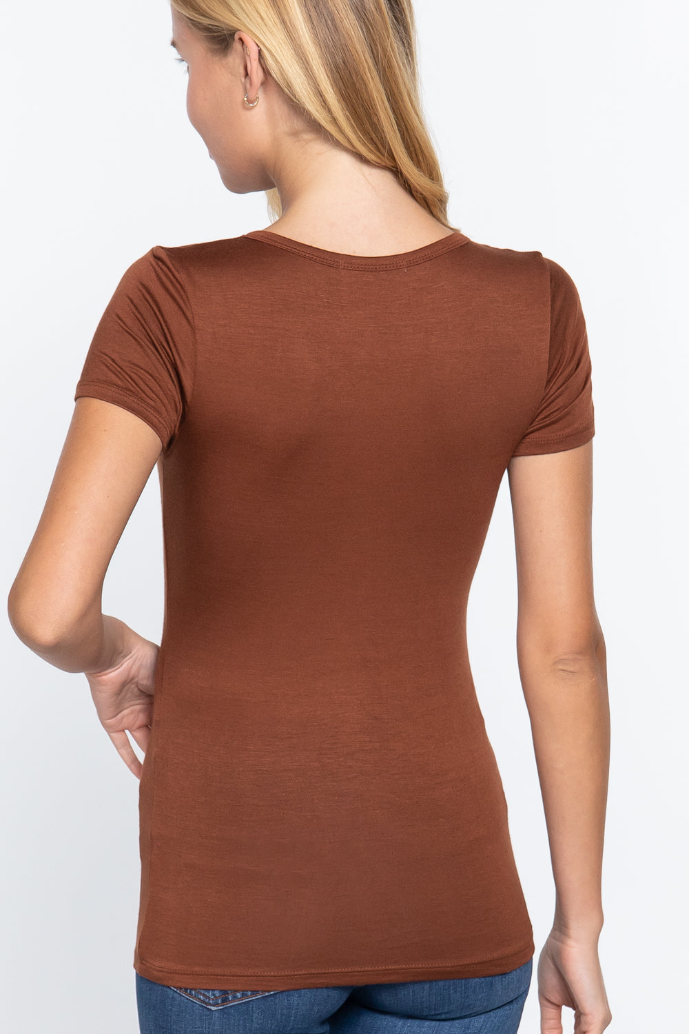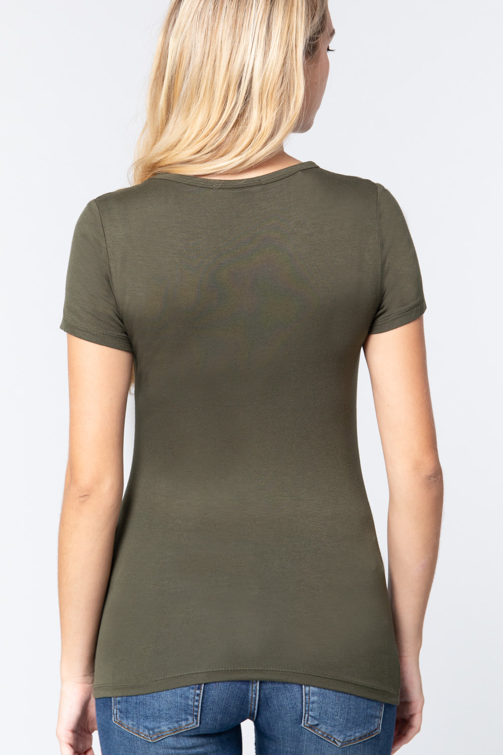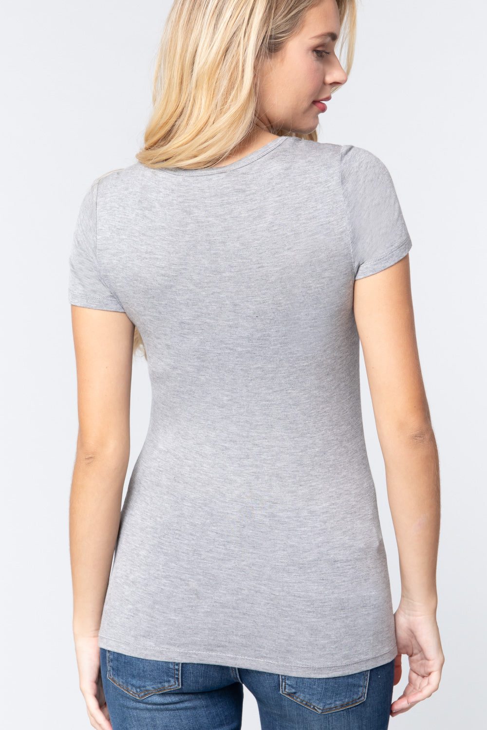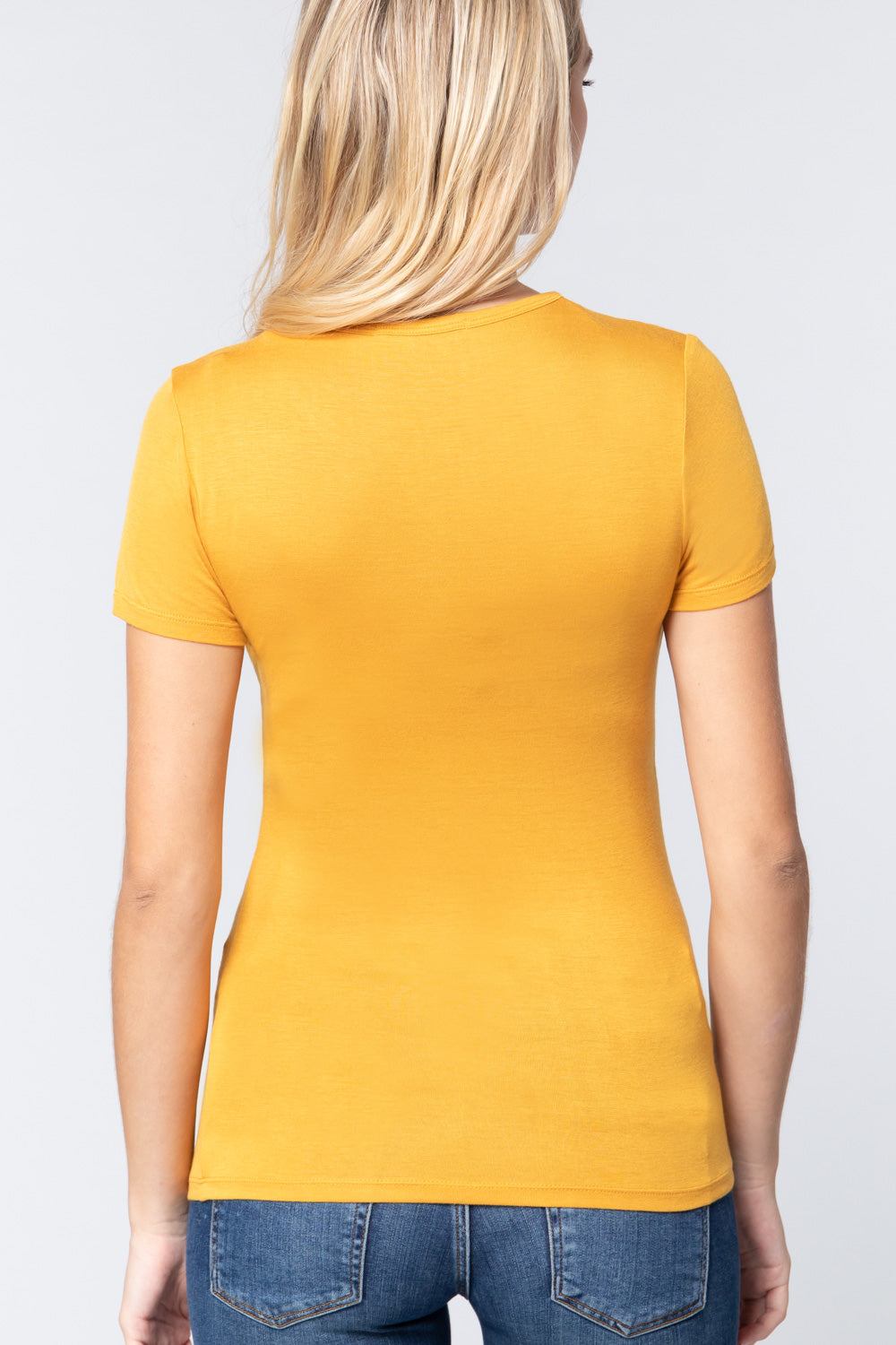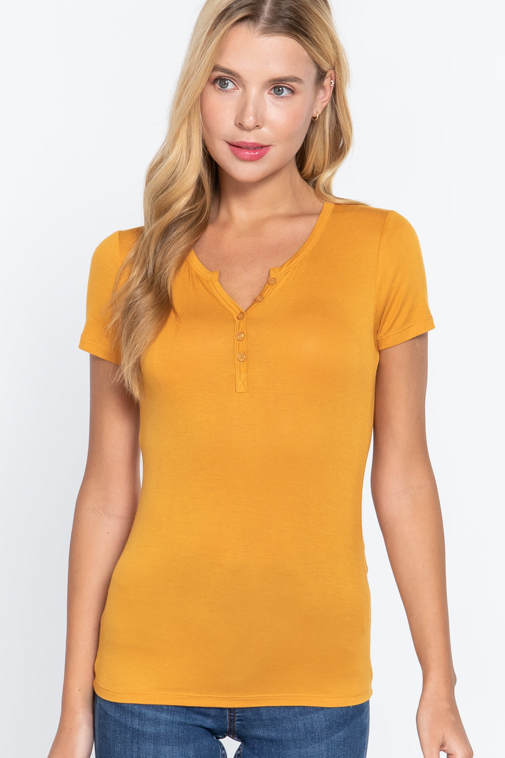 - SHORT SLEEVE BUTTON PLACKET RAYON SPANDEX JERSEY TOP
